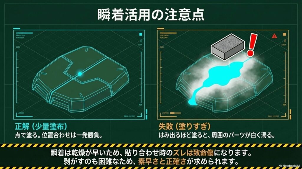 今では、接着剤を使う際は必ず以下の2点を意識することで、失敗のリスクを極限まで下げるようになりました!