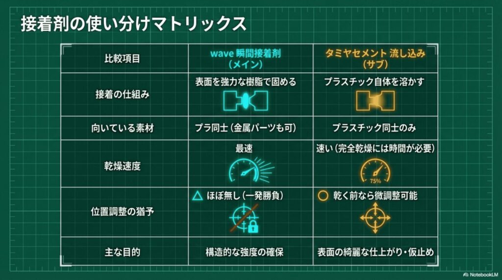 この記事では、おれが実際に使っているタミヤセメントとwave瞬間接着剤を中心に、ミキシングでの接着剤の使い分けをまとめていきます!