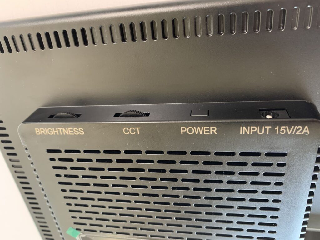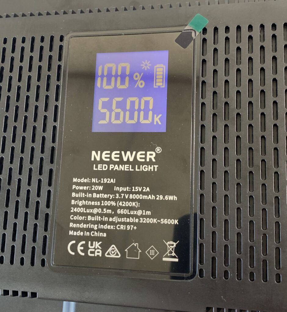 このLEDライトの裏面には明るさや色温度、バッテリー残量が表示される画面があります。