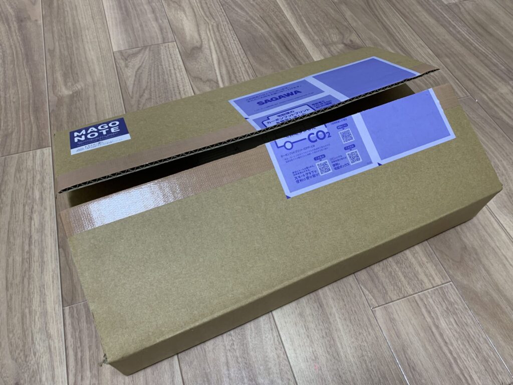 Amazonで購入したのですが、届いた箱は薄く長くコンパクト。