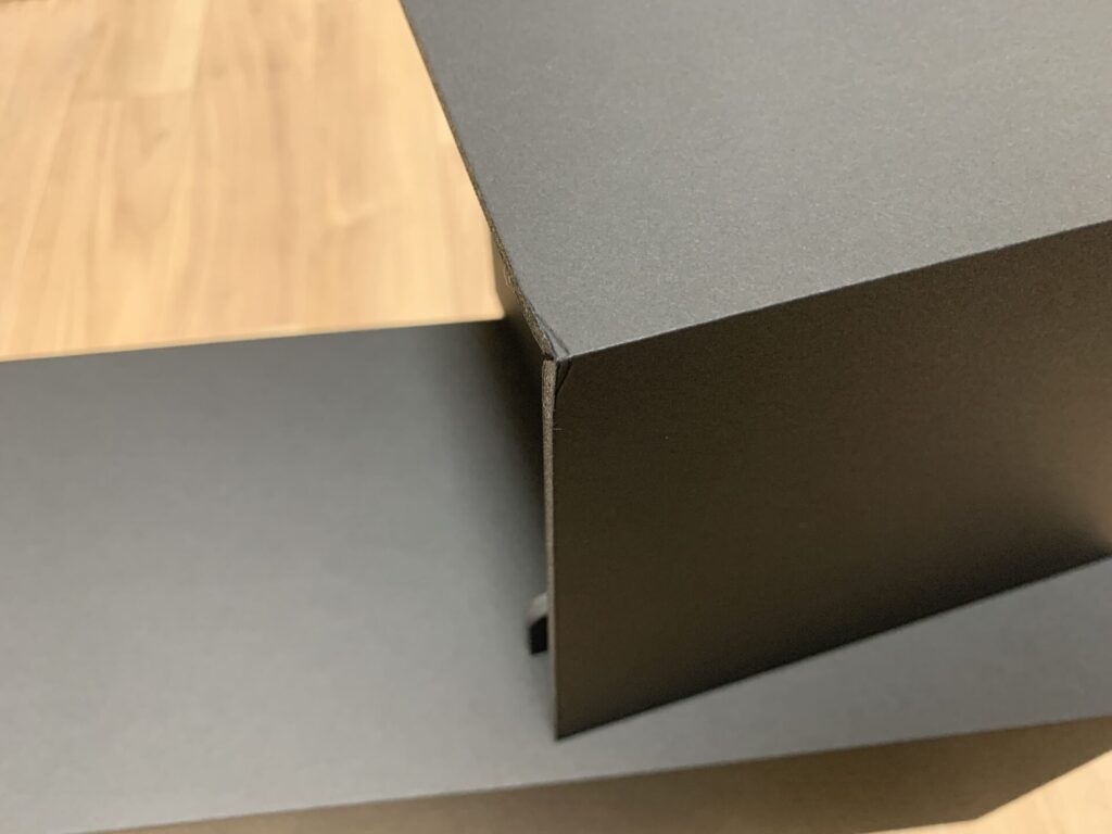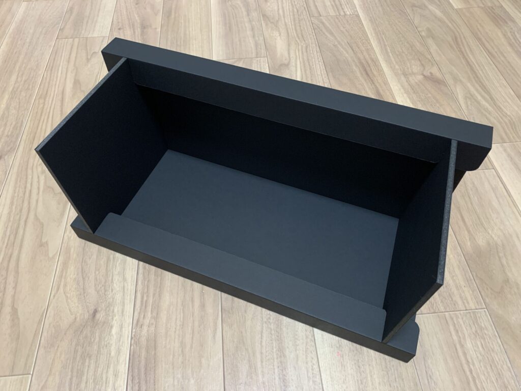 ⇒組み立てると箱型となり、きっちり並べることができるほか、表裏、側面の色が統一されているため、どこから見ても目立つ箇所が少ない。