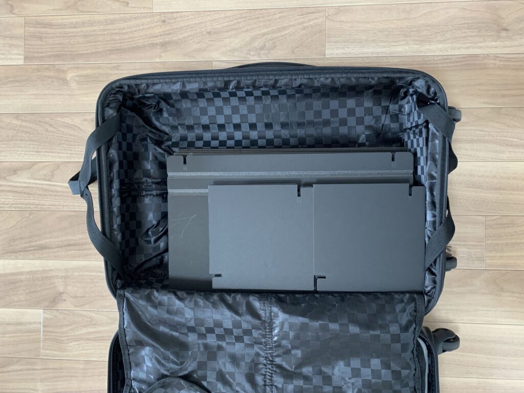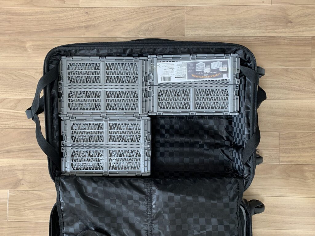 MAGONOTEの展示ラックをスーツケースに入れるとこんな感じになります。