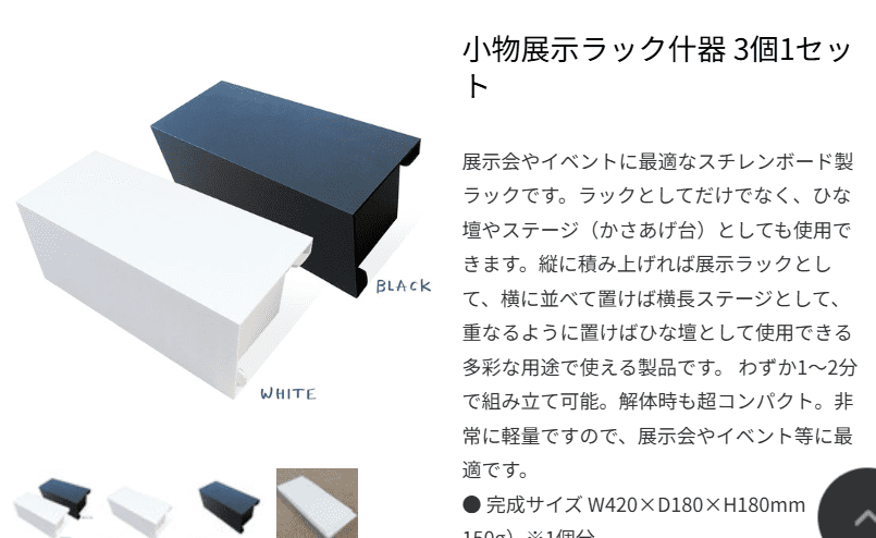 このMAGONOTEの展示ラックを使うメインの目的はひな壇にすることですが、元々1箱ずつ分かれているため、下の画像のように平置きにしても使うことができます!