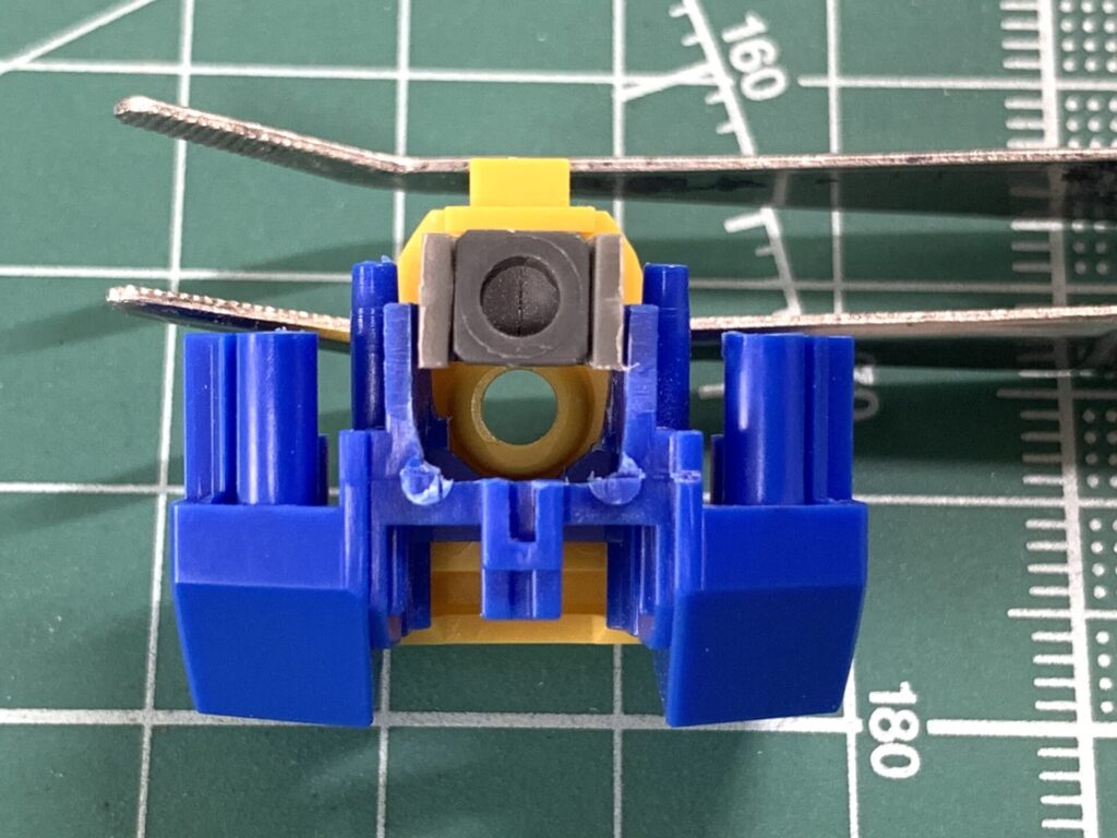 左右の3mm軸に加えて黄色のパーツも奥まったところが3mm穴となっています。