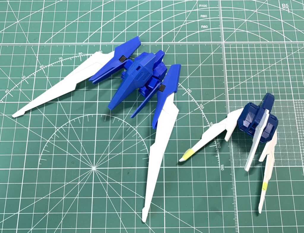 ちなみにおれはオーライザーの青色のパーツとAGE-2ノーマルのウイングを使うことで、トールストライクガンダムのグリッターレヴを意識して作りました。