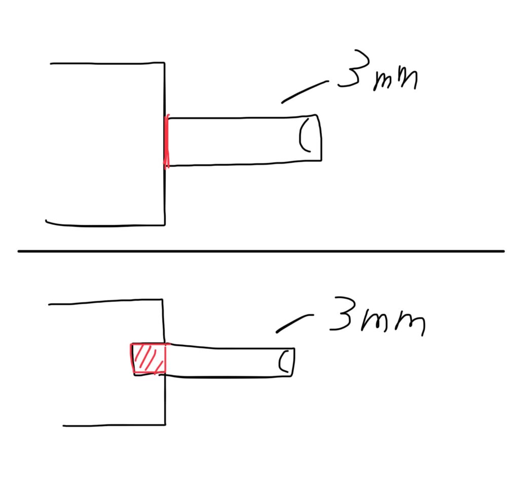 ピンバイスで凹みを作ると、3mm軸が奥まで入りきらないことがあります。