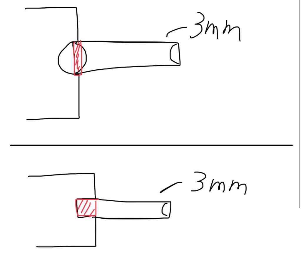 ・上側が無加工で3mm棒を接着した状態