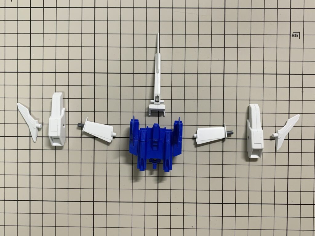 ウイングの先の白い箱みたいなパーツはEZ-Srというキットのバックパックの一部を付けています。