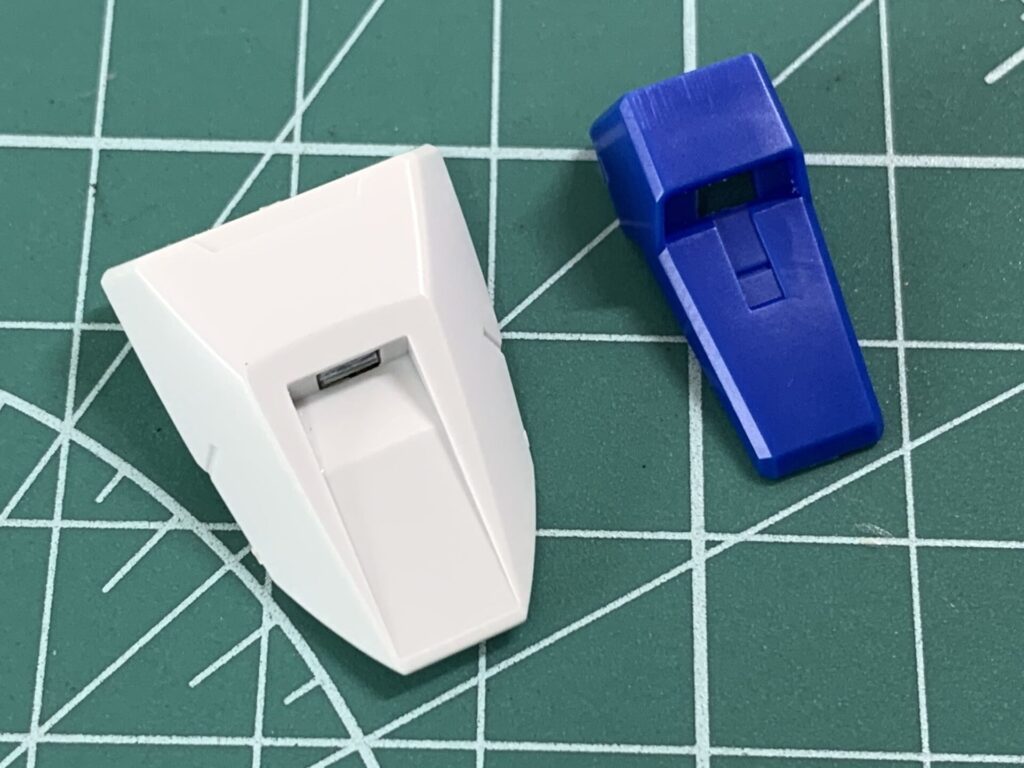 画像のように肩パーツの一部(側面の青色のパーツとふくらはぎの白いパーツ)を脚部に付けることで、見た目を変えるというのが今回のゴールです!